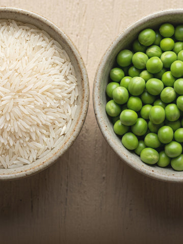 Los alimentos de origen vegetal –a diferencia de los de origen animal– no son fuentes completas de proteínas: no contienen todos los aminoácidos esenciales que nuestro organismo necesita. Sin embargo, mediante la llamada «complementación» (combinación de diferentes fuentes de proteínas de origen vegetal), podemos obtener afortunadamente proteínas completas. Esto es lo que hacemos en Vegan Protein al emparejar dos fuentes de proteínas que se complementan perfectamente: añadimos proteína de arroz, baja en lisina, pero alta en aminoácidos que contienen azufre (por ejemplo, cisteína y metionina), con proteína de guisante, más baja en aminoácidos que contienen azufre, pero alta en lisina. Y añadimos algunos extras a esta excelente base. La bebida en polvo también contiene harina de avena y polvo de glucomanano, también conocido como extracto de lengua del diablo. Esta última es una fibra hidrosoluble y un auténtico superalimento, por lo que es un complemento merecidamente popular en las dietas.