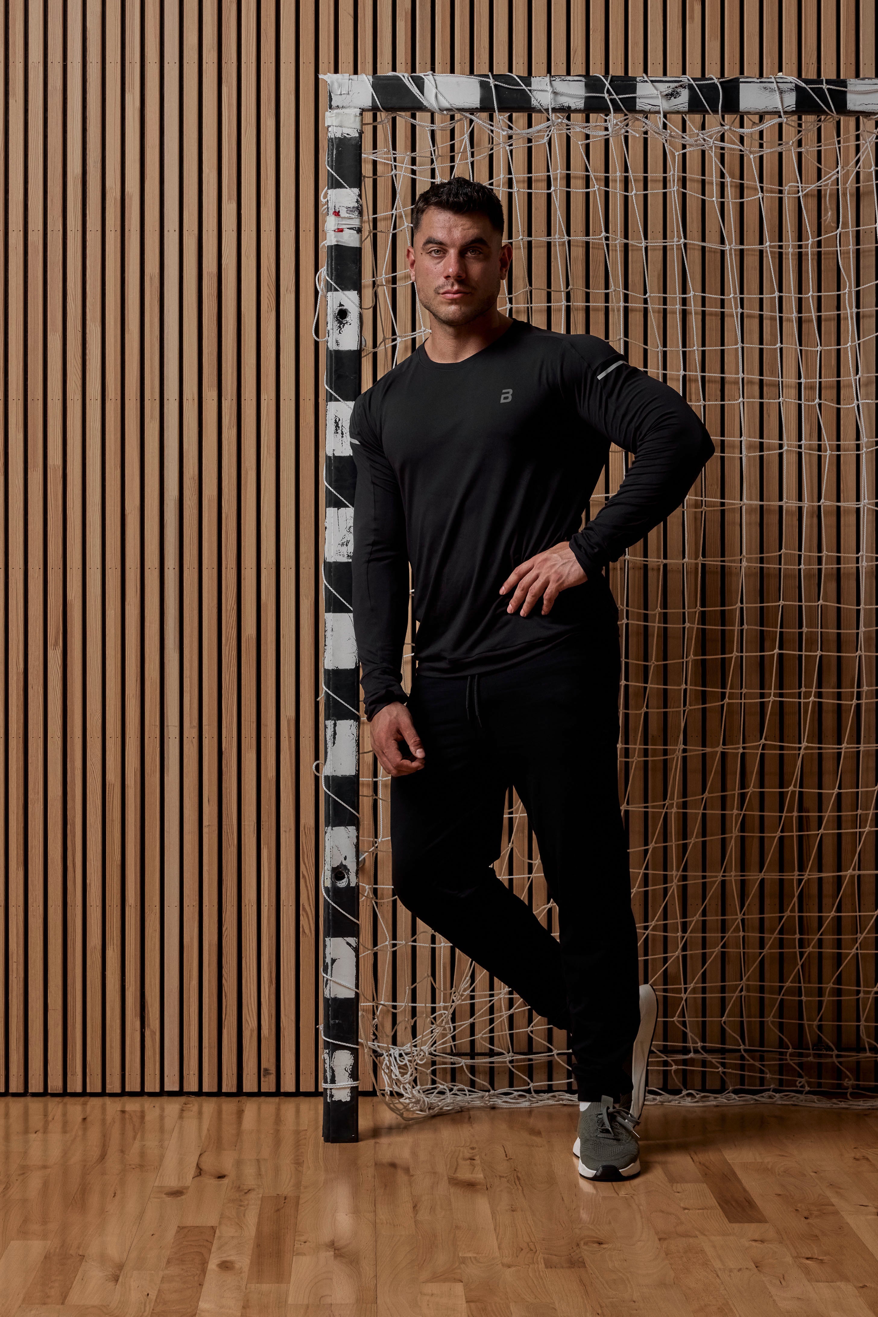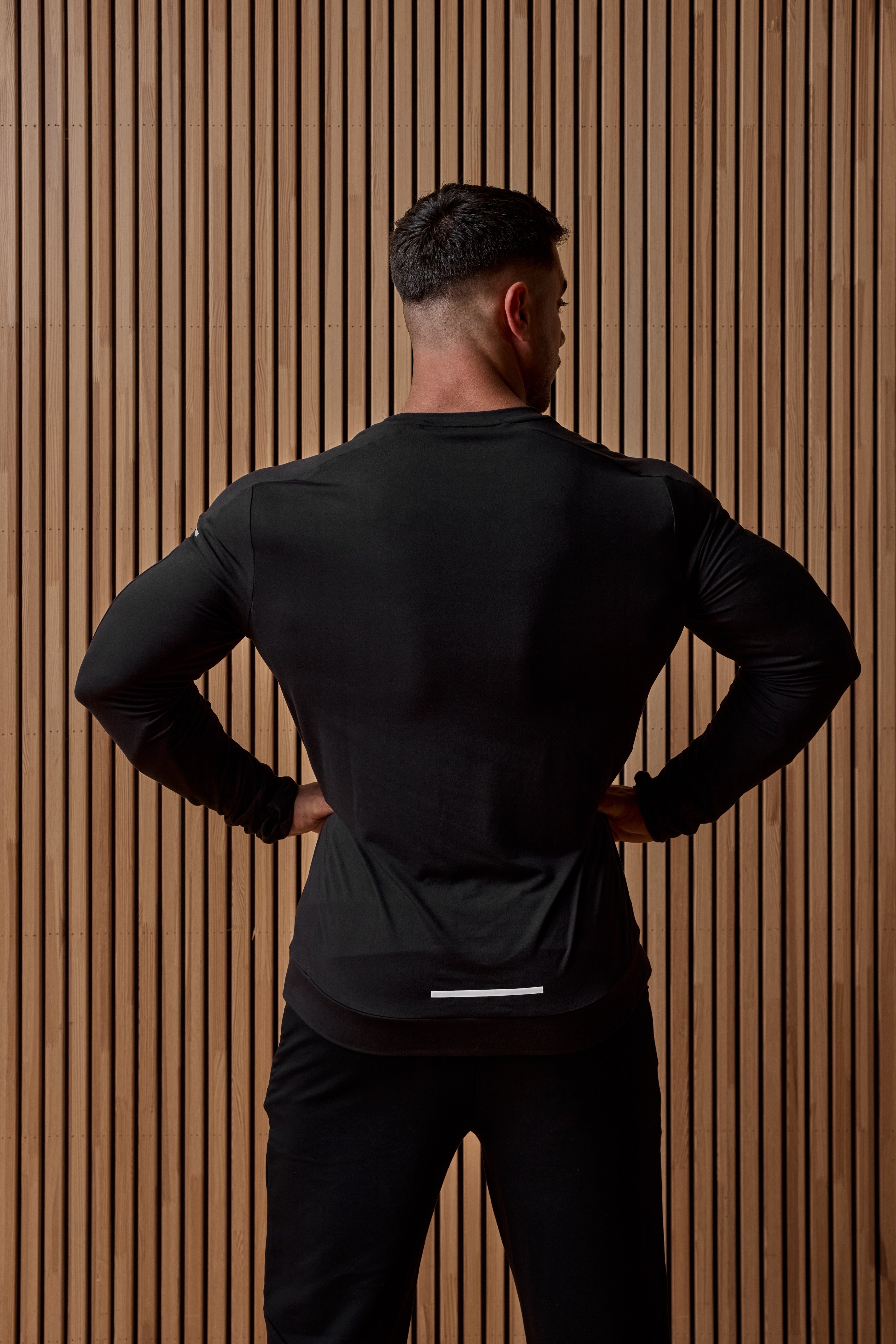 El modelo mide 185 cm y lleva la talla L.